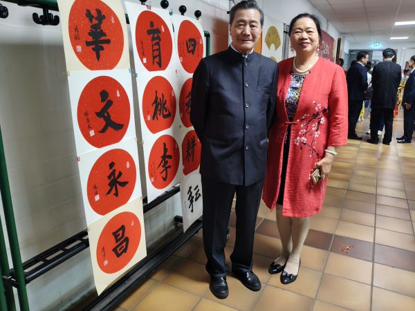 本网讯:2025年9月27日上午,波恩中文学校40周年校庆活动如期举行,为了丰富校庆活动内容,金玲老师书法展成功举办,参与校庆活动的领导与嘉宾饶有兴趣参观了书法展,波恩中文学校前任几位老校长及现任卢康乐校长、中国驻杜塞尔多夫总领事余勇先生, 波恩副市长翁特尔泽和德国合作学校的校长等也莅临会场参观了书法展给予好评,并与金玲老师合影留念。