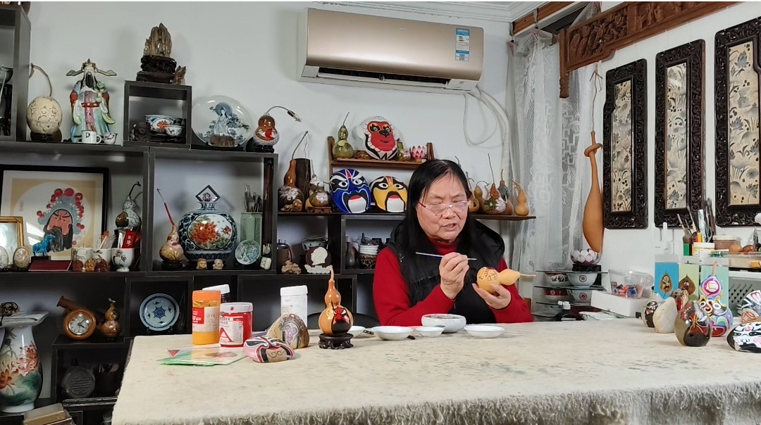 孙大师葫芦上绘制了一匹马,在马的上方写了一个福字,寓意为“马上有福”,她就葫芦彩绘的传承脉络、绘制技巧、融入现代生活等方面进行了精彩演绎,讲解深入浅出、生动活泼,让线上线下参与者对中华传统文化尤其是葫芦彩绘方面有了一个较为全面的了解。
